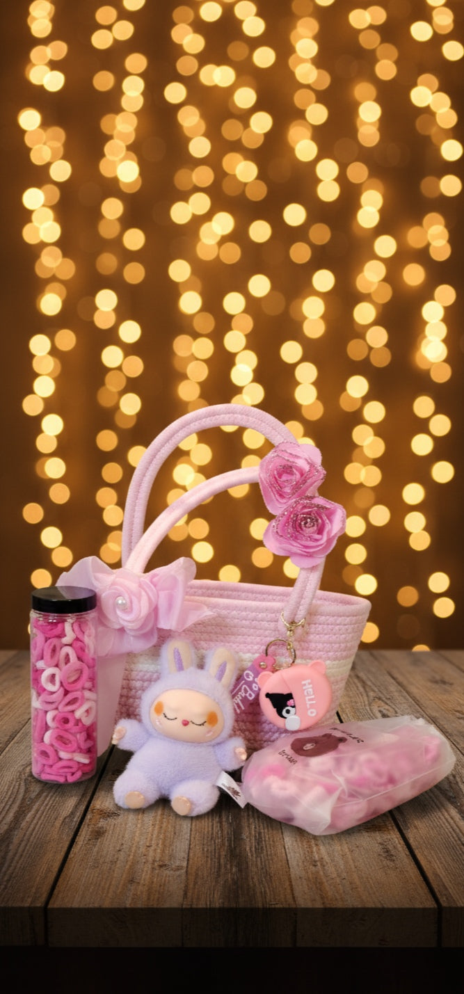 شنطه + لابوبو + ميدالية مرايه +مجموعة توك شعر
