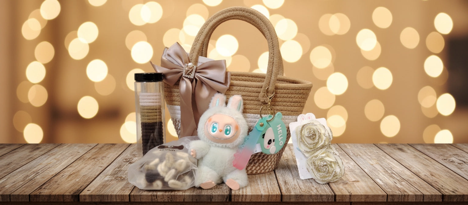 شنطه + لابوبو + ميدالية مرايه +مجموعة توك شعر